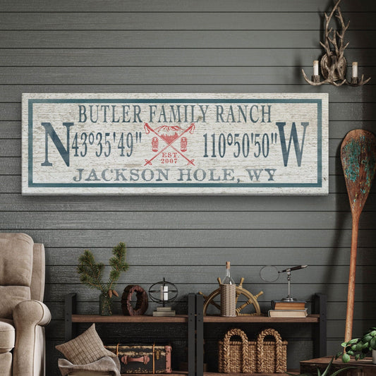 Personalized Coordinates Canvas Ski Lodge Sign - Family Name Cabin Decor