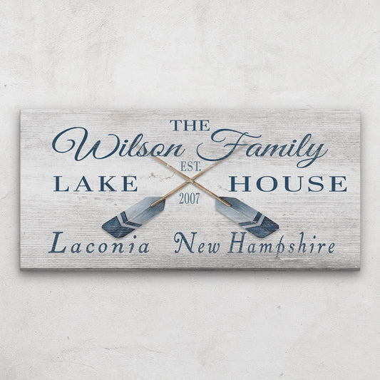 Personalizable Lake - Beach House Family Name Canvas Sign