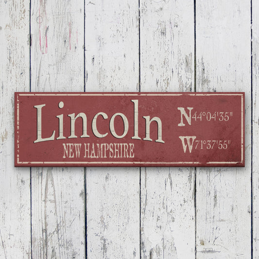 Personalized Rustic City Town Canvas Sign with Latitude Longitude Coordinates