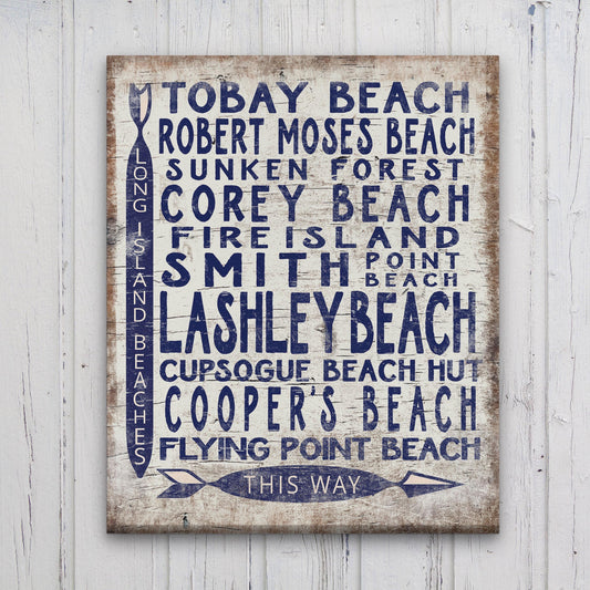 Long Island Beaches Sign Wood - Look Shore Arrow Sign