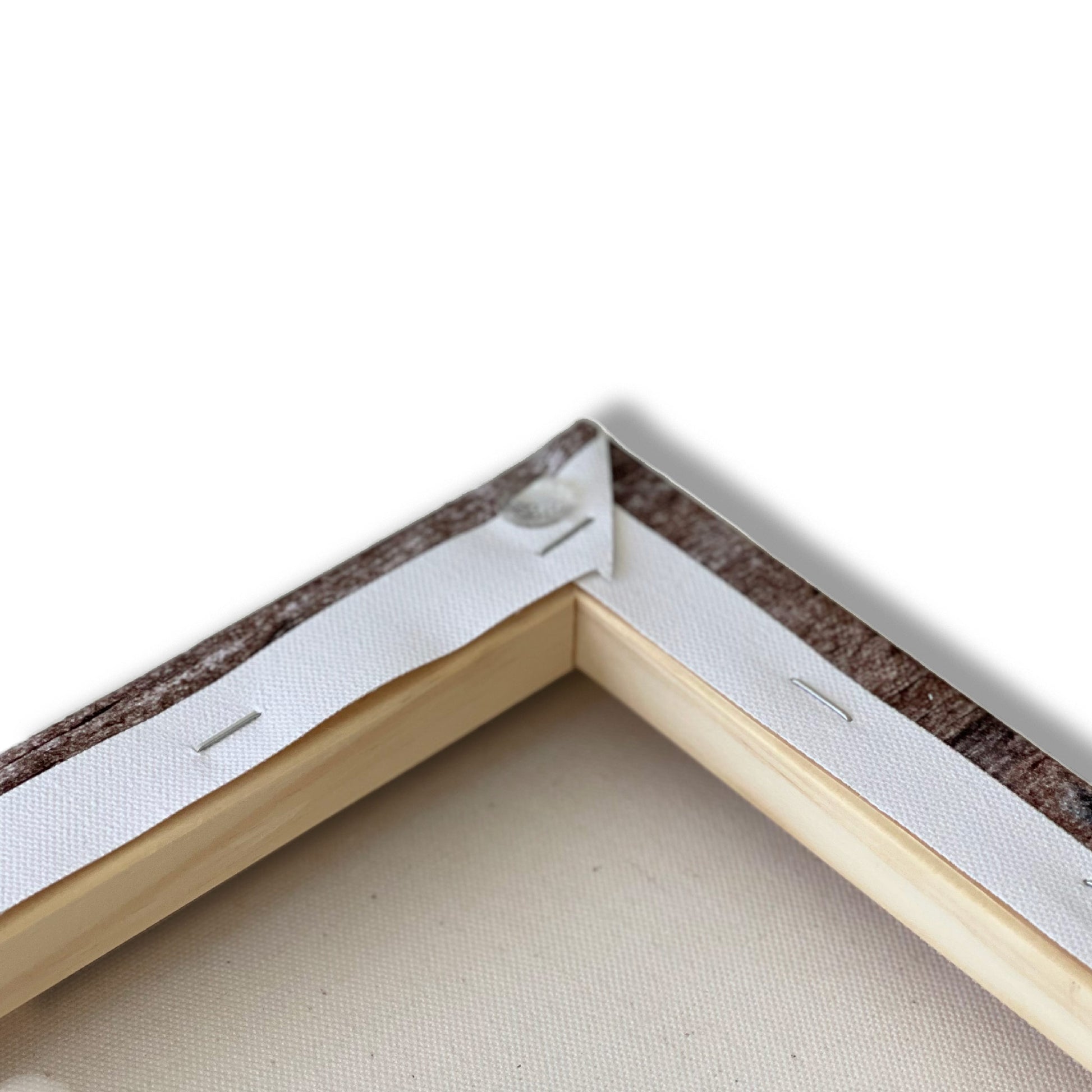 Hand stretched around FSC Certified 1.25" pine stretcher bars responsibly sourced from sustainable forests: